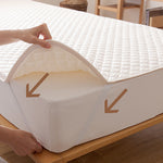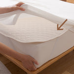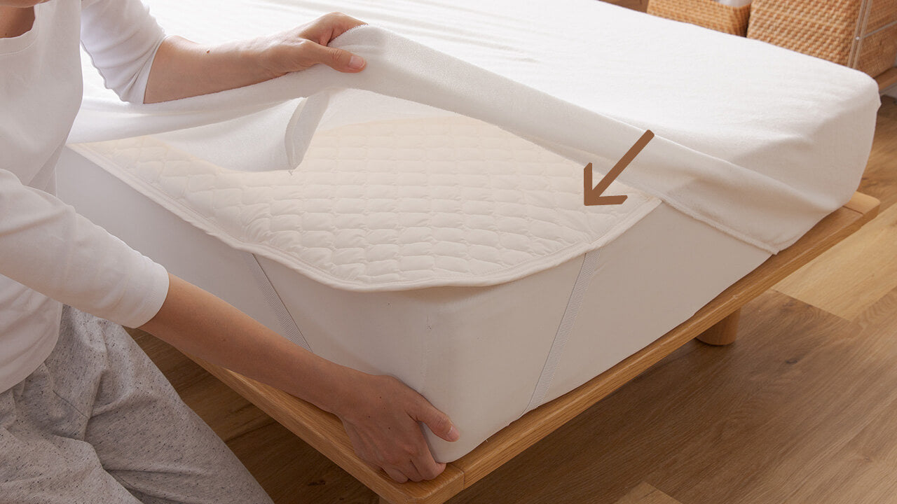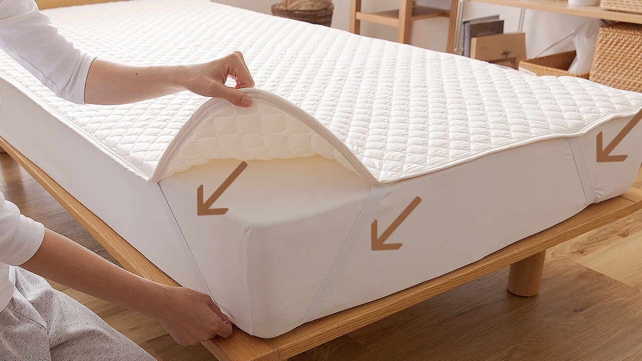 ベッドパッドを、ベッドマットレスの上にのせ、その上からボックスシーツで、ベッドパッドとマットレスを一緒にくるんでいただけますれば、問題なくお使いいただけます。