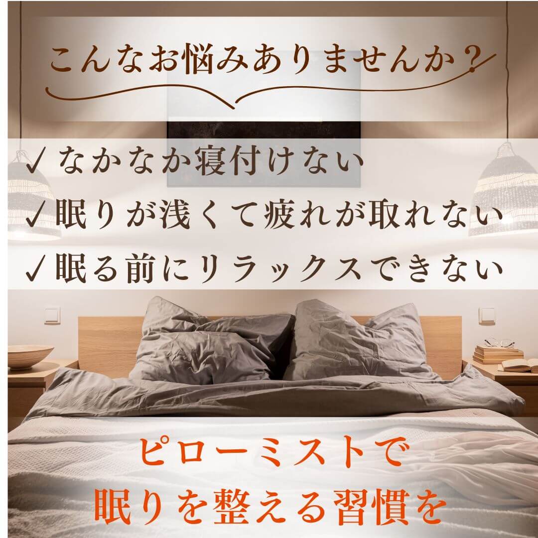 A. 寝る前に1〜2プッシュしていただくと、香りはおよそ2〜3時間ほど持続します。寝入りの時間をやさしく包み込み、朝にはほのかに残る程度の自然な余韻です。
